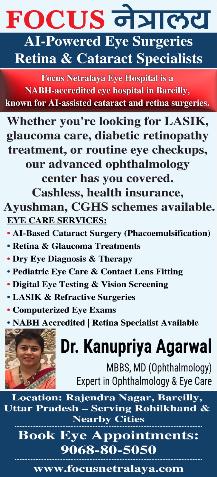 Dr Kanupriya Agarwal, Focus Netralaya Eye Hospital Rajendra Nagar, Bareilly